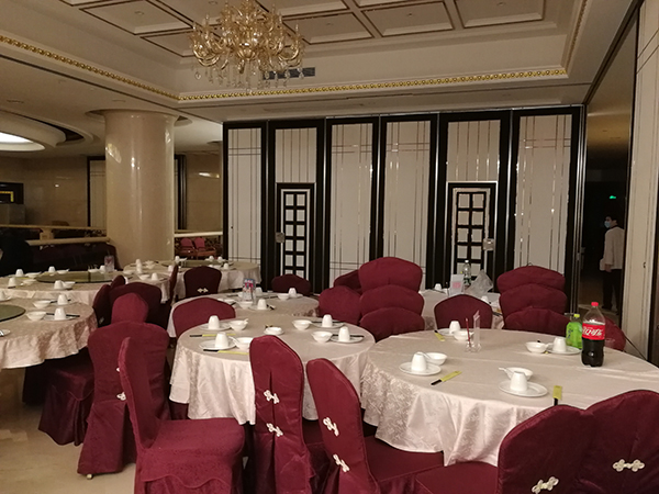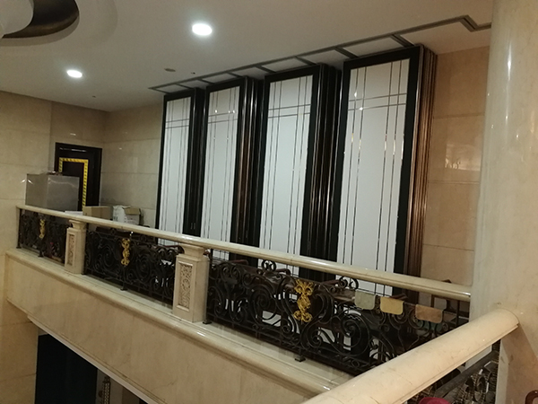 東莞富萊大酒店隔斷屏風采用了廣州廣成建材實業(yè)有限公司提供的不銹鋼裝飾面隔斷屏風。
