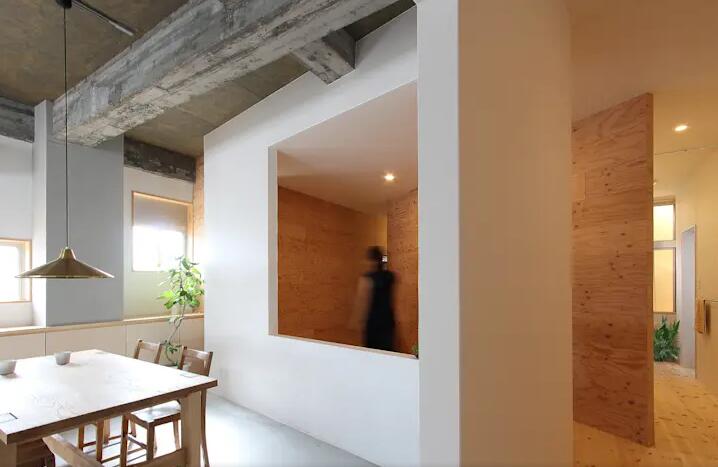 這是一幢舊雜樓的翻新樓。為了用墻壁分隔空的空間,建筑師和住在那的人就如何生活相互討論。進(jìn)行這項裝修的建筑師說:“我們正在嘗試設(shè)計一個空間,人與建筑物可以繼續(xù)成長。” 例如,即使是照片中的隔墻,也可以在兒童可以窺視的高度提供一個開口,光線和空氣流過沒有提供配件的墻壁上,這樣家庭就可以快樂地成長。如圖墻面有一個大開口,所有,劃分空間最重要的是弄清楚您要達(dá)到什么目的。