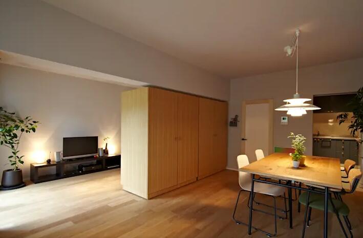對于固定式和移動式兩種類型,其表面光潔度應(yīng)與內(nèi)部裝飾協(xié)調(diào)一致。對于可移動類型,讓我們想象一下它是完全打開的。照片是使用滑動門的隔斷,全開時門會像袖壁一樣。在這里,門是用木頭做的,但是即使在空曠的地方,日式后室的白色墻壁看起來也很漂亮和諧。另外,如果使用滑動門,則應(yīng)選擇一種在關(guān)閉時沒有臺階的類型。關(guān)于門是否齊平,匹配等存在很大差異。